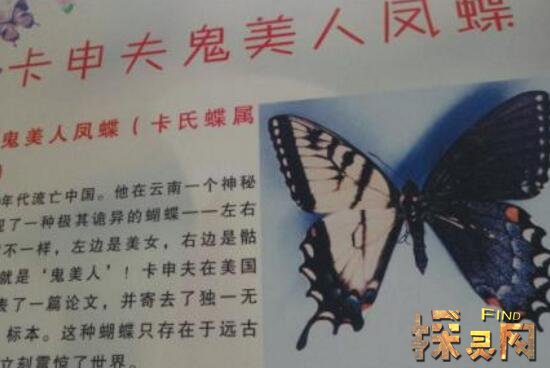 大自然中蝴蝶随处可见,在人们的印象里蝴蝶是非常漂亮的动物,但是在网上却一直流传着卡申夫鬼美人凤蝶传说,据说这只蝴蝶是世界上最恐怖的蝴蝶,因为想要捕捉这只蝴蝶的人都已经离奇死亡了,到目前为止世界上仅出现一个卡申夫鬼美人凤蝶标本,还没有任何人真正的看见过活的蝴蝶。