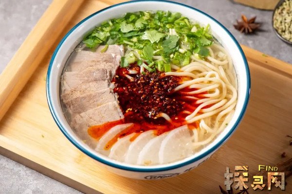 兰州牛肉面是甘肃省兰州地区的风味小吃,据说起源于唐朝,兰州牛肉面的标准是一清、二白、三红、四绿、五黄,根据面条的粗细分为大宽、二宽、韭叶子、二细、三细等。
