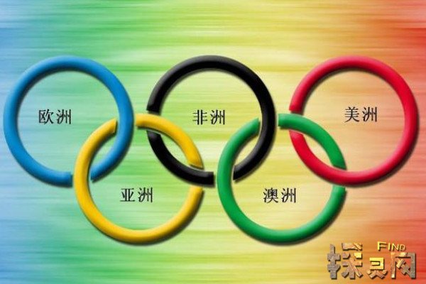 奥运五环上面的每个颜色代表一个洲,其中蓝色代表欧洲、黄色代表亚洲、黑色代表非洲、绿色代表大洋洲、红色代表美洲,而标志的第六种颜色是旗帜的底色白色,它能够表示当时世界上所有国家的国旗颜色,同时也代表所有国家都能参加奥林匹克比赛,该标志在1920年的第七届奥运会被正式使用。
