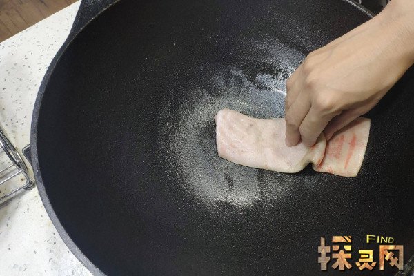 铁锅充分受热以后,将提前准备好的猪皮,或者是猪肥肉放入锅中,用筷子夹住它擦拭每个角落,煎出来的油充分且均匀的涂抹在整个锅面上,等到煎出来的猪油颜色变黑了以后,就将猪油给倒出来,用热水清洗干净,再次开火将其烘干,并放入一块新的猪皮,重复这个举动3-4次后,往锅中倒入植物油,涂抹均匀后,就算是完成了开锅。