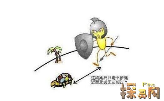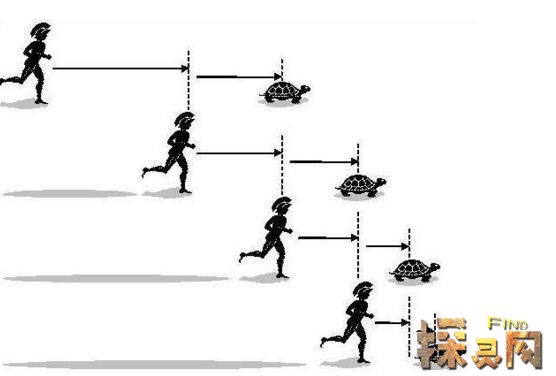 阿基里斯与乌龟的悖论是很神奇的一种解释,在一场跑步比赛中,如果一开始跑得最慢的乌龟就领先跑得最快的希腊勇士阿基里斯,那么乌龟永远也不会被阿基里斯追上的...可以这样说要想追到乌龟,这位勇士必须先到达乌龟现在的位置;而等阿基里斯到了这个位置之后乌龟已经又前进了一段距离。等勇士前进到乌龟第二次所在的位置,乌龟却又前行了...所以,某种意义上来讲,阿基里斯是永远追不上乌龟的!
