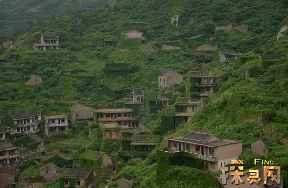 嵊山是位于浙江省舟山市的一座海岛,是我国著名的渔港。在嵊山岛东北面有一个村庄,叫做后头湾村,如今是一个无人的村庄,大家看看上面的图片,就可以看到,所有废弃的房子都爬满了绿色的植物,远远望去更是被植被给淹没了。因为村落旧址紧邻着一片坟场,当地人已经习惯于把那儿叫“鬼村”。