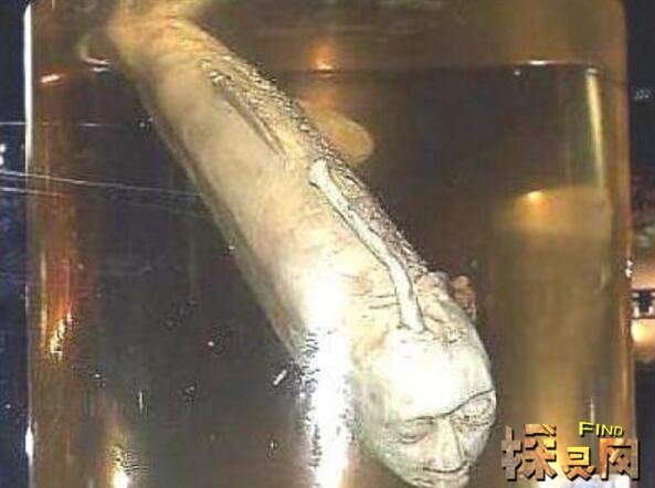 日本的博物馆里面总是有一些诡异的怪物,看看上面的人面鱼,就是泡在日本某个博物馆的福尔马林里面。而这条长着人脸的鱼也看不出是什么样的品种,通体白色(也有可能是福尔马林泡太久了),头上还有一根像是灯笼鱼一样的头灯,本来鱼头的地方却是一张诡异的人脸。这条日本人面鱼的来历也不得知,日本真是有很多怪异的东西...【查看详情】
