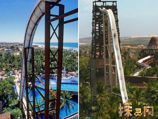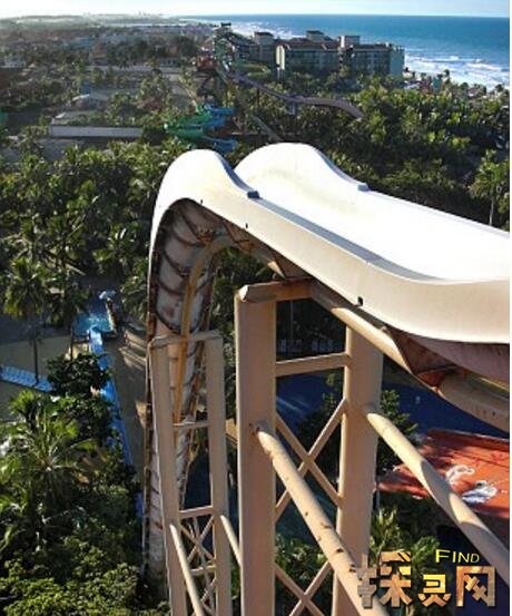 这个滑梯坐落在巴西城市Fortaleza,当地人都称它Insano话题。做这个滑梯的时候,你滑下去的速度将达到每小时105公里,简直就像坐在超跑法拉利车上一样快,体验极致速度的感觉。不过要知道其速度并不是人们关注的焦点,看看这这些滑梯的造型吧!是不是太简单了呢,一点缓冲也没有,直接就这样滑下这个角度都快到90度的滑道...