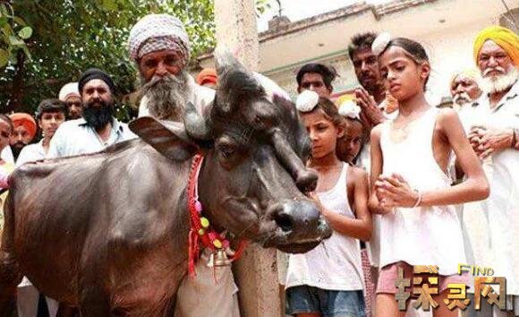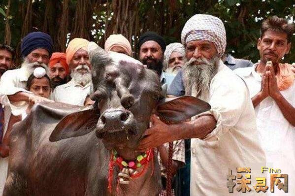 这件事发生在印度旁遮普,村民们纷纷膜拜萨德哈拉村出生的三只眼的牛犊。由于牛本身在印度宗教中就是三大神“湿婆”的化身,外加这只小牛不同一般的外貌,因此当地人将它视为神的使者,集体膜拜。