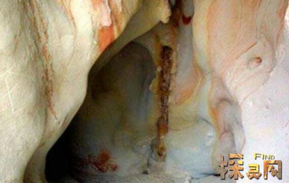 最先开始发现白公山的铁管的是三个岩洞,外貌呈不规则的三角形,中间的岩洞大,东西两边的小,中间的洞离地面约2米,洞深约6米,最高处约8米,与通常所见的自然岩洞不同,有点像人工开凿的洞,洞内上下左右都是纯一色的沙岩,除含沙子外,沿有任何杂质,还有一根直径为40厘米的大铁管从山顶斜通到洞内,由于多年的锈蚀,只能看见半边管壁。