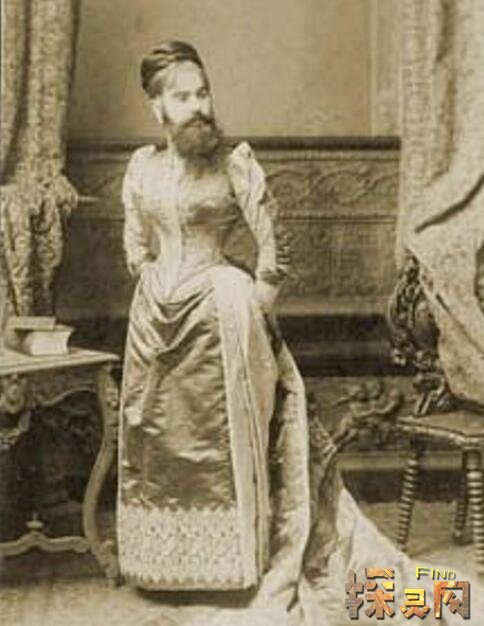 这名女子叫做Madame Clofullia,在瑞士出身,她天生多毛发,八岁的时候竟然还长出了2英寸的胡须。十四岁在父亲和一个代理的陪同下游览欧洲,随后就只有父亲一人陪同了。在巴黎他邂逅了画家Fortune Clofullia,之后两人结婚。Madame Clofullia出名还因为她留着有型的胡子模仿拿破仑三世。之后,统治者给了她一大颗钻石作为回报。