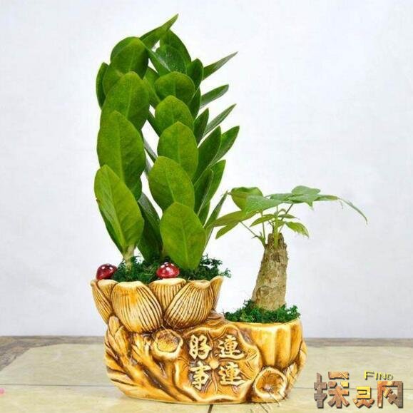 金钱树和发财树搭配的盆摘,不仅可以用来观赏,还可以净化空气,作为礼物送给朋友是非常好的,而且这两种是都是风水中最招财的植物,寓意着财运连连。