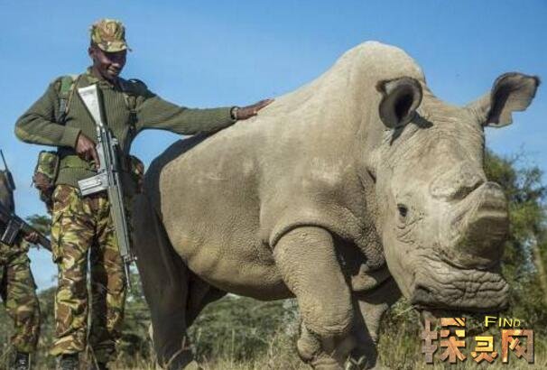 而且事实上,北方白犀牛在之前也仅仅只剩3头,生活在肯尼亚自然保护区内。而且为了防止最后一头雄性北方白犀牛被猎杀,人们只好将它头上的两只犀牛角割去,并安排40名持枪守卫和18名饲养员不分昼夜地轮流看护...但是最近的这头叫做苏丹的白犀牛,因为病情迅速恶化,终于在肯尼亚被实施“安乐死”!