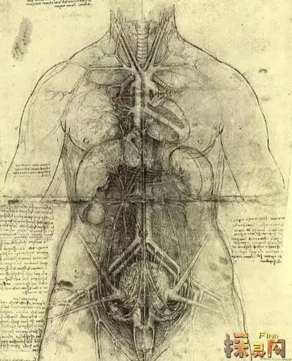 达芬奇发现了血液的功能,认为血液对人体起着新陈代谢的作用,并认为血液是不断循环的。要知道达芬奇为了研究人体,曾亲自解剖过三十多个人。当时的医学对这一块几乎是空白的。他还是最先采用蜡来表现人脑的内部结构,也是设想用玻璃和陶瓷制作心脏和眼睛的第一人。
