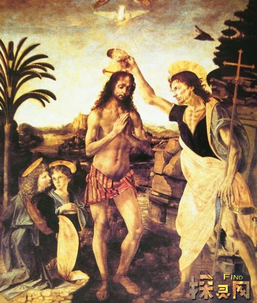 《基督受洗》是著名画家达芬奇的作品,这是一个基督教传统绘画题材,是应瓦隆勃罗萨教团之邀,为该教团的一所寺院而画的。那时达·芬奇尚未离开老师的工场。据称这幅画的主要构图是委罗基奥完成的,达芬奇补充了剩下的部分在这幅画上,达·芬奇奉老师之命,只画了左侧两个小天使中左边一个,可是就这一个侧面形象的天使,从人物造型和脸部的神情表现来看,要比老师所画的其他几个人物生动得多。