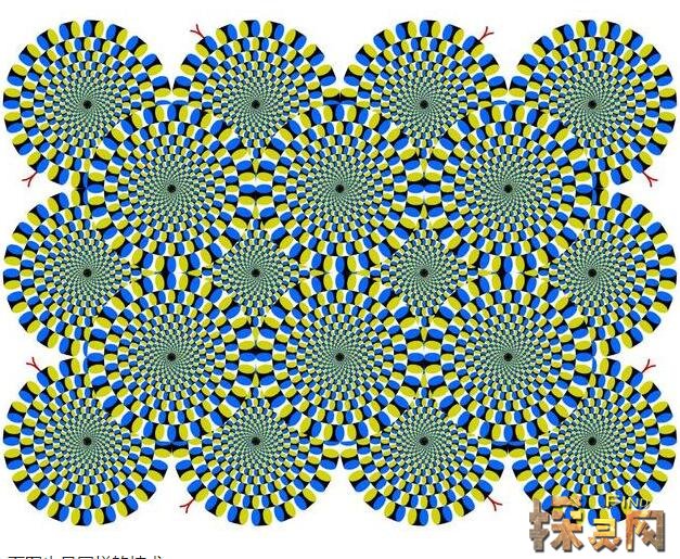 这张照片乍一眼看上去就会让人以为这是一个动态gif图片,但是实际上,这是就是一张静态图片。当你紧盯画面中心的圆圈不动的时候,你的大脑将会将它自动变成动态图片,其原理和咖啡店的幻觉一样,都是会欺骗眼睛的错觉图片的原因。
