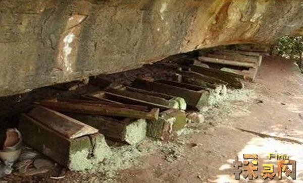 临水悬崖绝壁上市满了各式各样的岩洞,独特的地理环境是悬棺的基本成因,悬棺是一种特殊的葬礼,自古以来,采取这种葬俗的人都显得非常神秘。