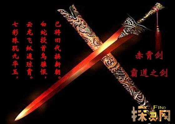 赤霄为汉高祖所得,铁,铭曰赤霄大篆书,三尺,高帝以秦始皇三十四年得于南山及贵常服之斩蛇。高祖刘邦佩剑,起义时有铸剑师打造的青铜剑。“斩白蛇、提三尺剑立不世之功”都指这把剑。
