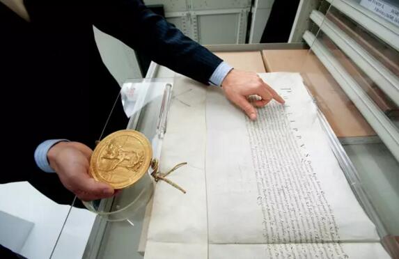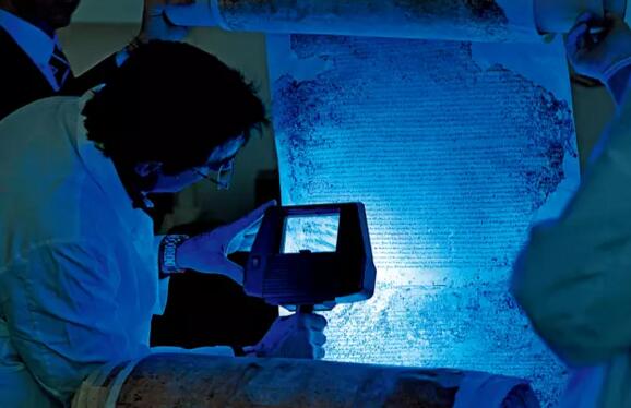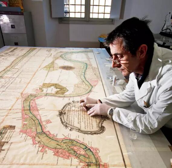 亚历山大德罗·卢贝奇尼和毛瑞奇·温利是两位专业的档案管理专家。一位负责仔细地处理一本巨大羊皮卷轴的切口边,另一位用UV灯来挑选出羊皮卷轴中正在消褪的墨迹和因为几个世纪来的霉菌侵蚀已经消失的部分。