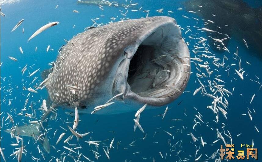 鲸鲨虽然贵为世界上最大的鱼,但它们却以细小的鱼类和浮游生物为食,鲸鲨虽然也长有着锋利的牙齿,但对于捕食却是不起任何作用,因为它们也是将食物和海水一起吞下,用腮滤去海水后就可以将食物咽下。鲸鲨在世界各地还有都会有,每年五、六月洄游到中国北部湾。广布于各热带和温带海区,中国各海区夏、秋季节都有分布。性情温和。由于大量捕杀,数量锐减。