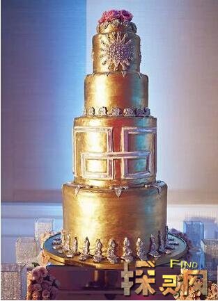 婚礼蛋糕上展现了迷人的黄金装饰艺术设计