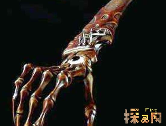 鬼手这把刀来源十四世纪意大利一个疯狂铁匠铸造的,当时在铸造的时候将自己妻子右手砍下并做成刀柄,之后又将儿子肋骨做成刀刃,最后将自己小腿骨做成刀柄。在完成这个刀后将其献给债主,这位债主在得到刀后将全家人都烧死了。在传闻上只要得到这种刀,就会全家死光。
