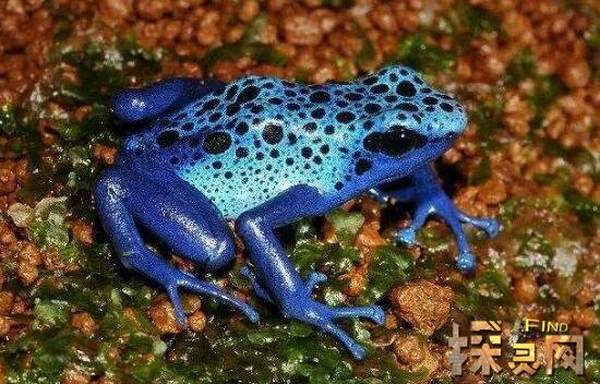 钴蓝箭毒蛙主要生活在苏里南的热带雨林地区,喜欢比较潮湿的环境,而且繁殖能力超强,体型也是箭毒蛙种类中比较大的一种,还拥有着荧光蓝色的皮肤,在加上身上绚丽的黑色斑点,几乎可以说在自然界中是无敌的存在。