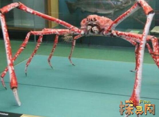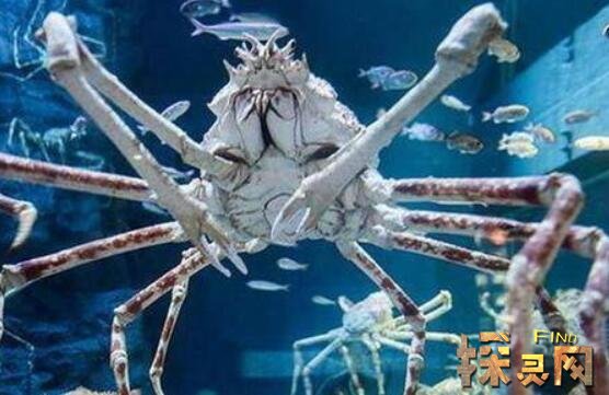 巨螯蟹主要生活在日本海深海底层,水深大约在50-300米间。体长达3米,双螯张开跨度可达4.2米,体重40斤,是现存最大的甲壳动物。巨螯蟹常常猎食一些鲨鱼、盲鳗、螃蟹、各种鱼类,用自己8只锐利的爪子狠狠缠住猎物,直到猎物衰竭后饱餐一顿。