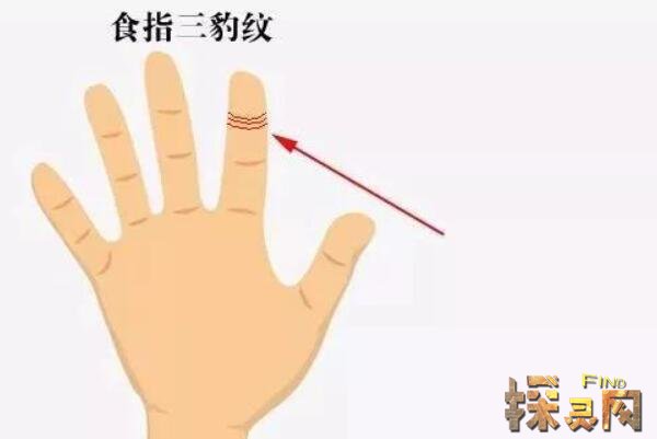 三豹纹长在食指的上面,在我们的食指上面有一条横纹,一般每一个人的指头上面都会有三节指纹,拥有这三节指纹,就意味着我们的人生不缺钱。