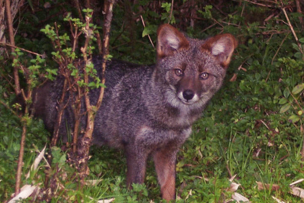 达尔文狐的身体长度为48-60厘米,体重在1.9-3.9千克之间,这是一种体型比较小的狐狸品种,毛发颜色为暗灰色,耳朵带有鲜艳的红色毛发,生活在智利南部的温带森林之中,主要食用小型的哺乳动物、鸟类、甲虫、果实,在饥饿的情况下也会食用腐肉,1834年的时候,由达尔文给它命名。