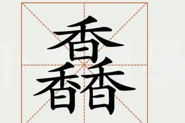 1、馫,读音为xīn, 为典型的上下结构,由三个香组成。