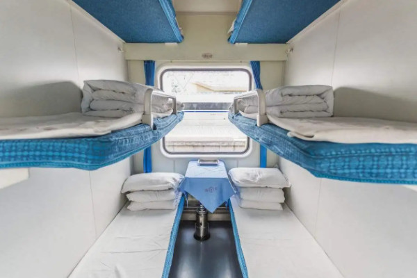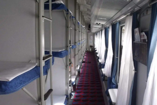 2、软卧:一列火车的软卧一般只有一节车厢,软卧的床铺非常柔软。空间也比较大,一个隔间里面四个人,分为上下铺,环境舒适,而且隔间中还设置有房门,私密性很好,适合经济实力比较好或者身体不适的人乘坐,长途旅客也建议选择软卧,增加体验感。