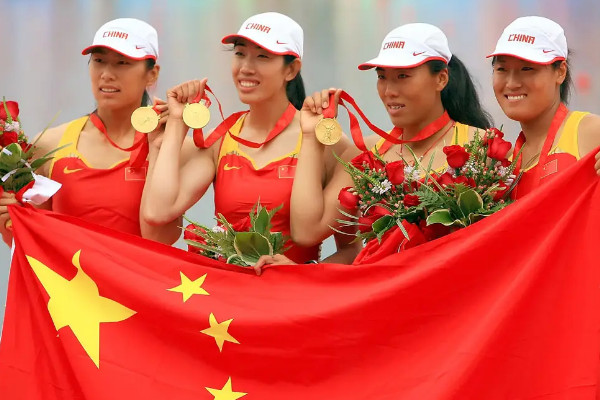 在2008年北京奥运会中国获得了48枚金牌,22枚银牌,30枚铜牌,金牌数量领先了第二名美国12枚,是第三名俄罗斯金牌数量的2倍,对于奖牌的设计有着浓郁的中国特色,取自古代龙纹玉璧造型的玉璧。
