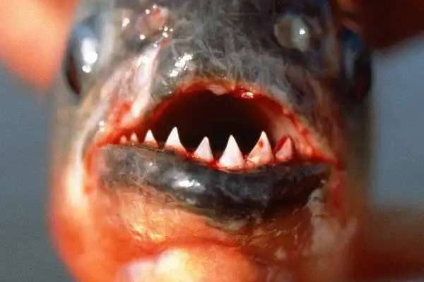 帕库食人鱼又名人齿鱼,是锯脂鲤的近亲,属于辐鳍鱼纲、脂鲤目、脂鲤科,原生活在亚马逊河流域,后被引进到巴布亚新几内亚,而后出现了几起袭击男人的裆部报道,以至于被人称为爱吃男性睾丸的神秘“怪鱼”,其外形与其它鱼类没有什么两样,但是嘴巴内长有类似人类的牙齿,以坚果为食。
