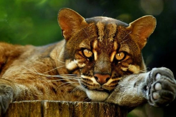 虎猫一共有10个亚种,身体十分匀称,头部较圆,视觉、嗅觉、听觉都非常的灵敏,爪子锋利,能够伸缩,虎猫擅长跳跃以及攀援,有夜视能力,主要捕食鱼类、蛇类、猴类,有时候也会吃小猪以及家禽,主要栖息在热带雨林之中,有很强的领地性,属于国家一级保护动物。