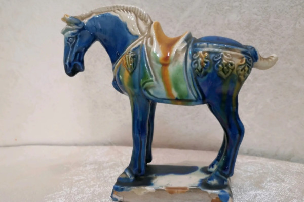 另外唐三彩在上色时 ,需要先在物品上涂上以黄色、白色、绿色为基本色,而后借助施釉的方法,配合高温煅烧,使得釉色浇融流溜形成独特的流窜工艺,从而让人们看到斑驳淋漓的视觉盛宴,注意唐三彩的外形多数圆润、饱满,但人物比例还是十分恰当的,就连线条也十分的流畅细腻。