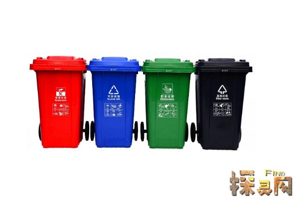 垃圾分类有四种垃圾桶,分别为红色垃圾桶、绿色垃圾桶、蓝色垃圾桶、灰色垃圾桶。其中红色垃圾桶代表有害物质,包括废电池、荧光灯管、油漆、过期药品等。绿色垃圾桶代表厨余垃圾。蓝色垃圾桶代表可回收再利用垃圾。灰色垃圾桶是除了有害物质和可回收物质以外的垃圾。