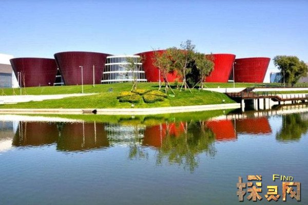 山西太原博物馆是文化岛大平台广场上的标志性建筑之一,主体部分由5个相对独立又相互连通的椭圆倒锥体组合而成,其灵感来源于中国红灯笼。