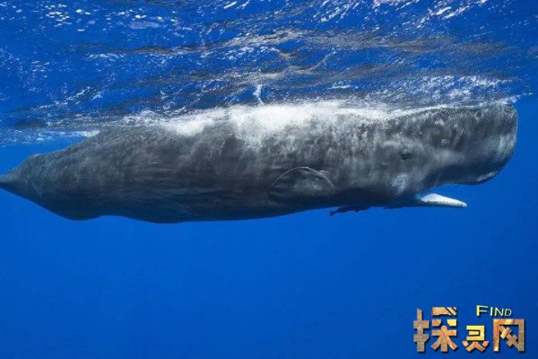 抹香鲸身长18米,体重超过50吨,是世界上最大的齿鲸,头部占身体的1/3,没有背鳍,而其它的跳水能力很强,是潜水最深、时间最长的哺乳动物,颈部较短,头部似乎与躯干相连,主要吃鱿鱼。