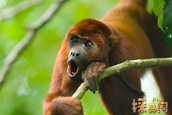吼猴听名字就是一种声音很大的动物,它们能够发出128分贝的声音,是猴类中声音最大的一种,该品种猴子的舌骨特别发达,可以形成一个特殊的回声装置,在遇到敌人或争夺领土时,吼猴会发出巨大的吼声,在1.5公里外都能听到。